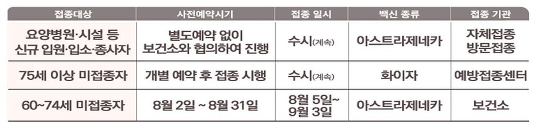 이와 별도로 75세 이상 어르신 중 아직 접종하지 않은 60만명은 언제든 접종 일정을 다시 예약할 수 있습니다.