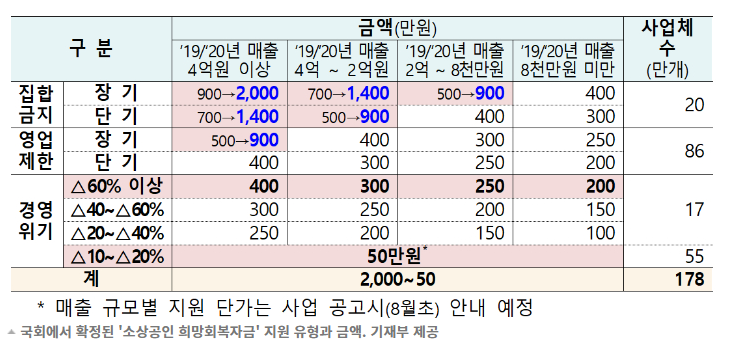 한편 코로나19 피해 소상공인 178만명에 지급하는 희망회복자금은 8월 초 사업 공고를 거쳐 순차적으로 지급을 시작합니다.
