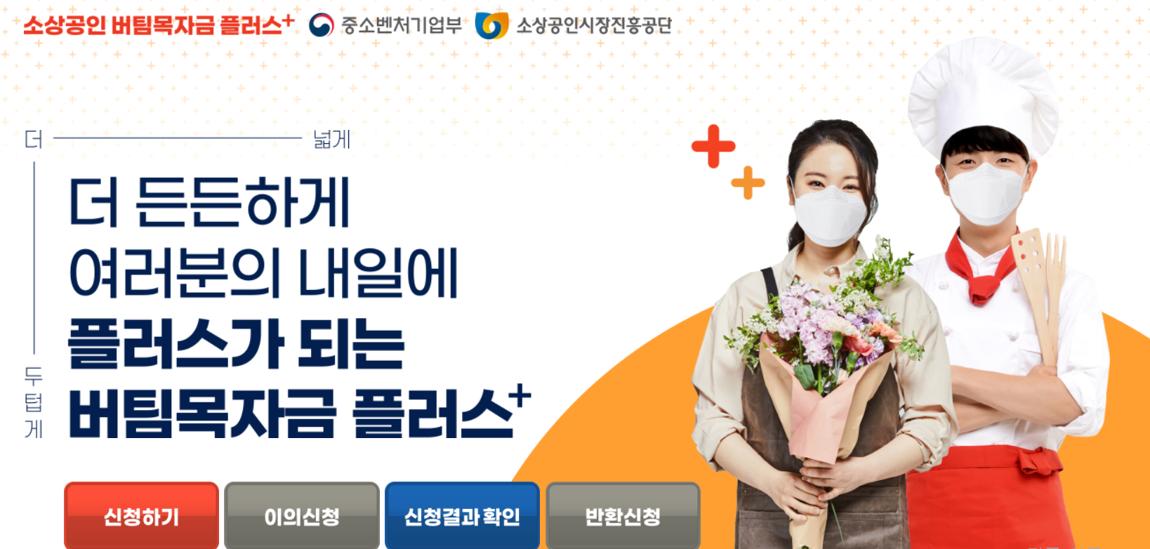 소상공인 버팀목자금 플러스 소개, 신청하기, 신청결과 확인 등