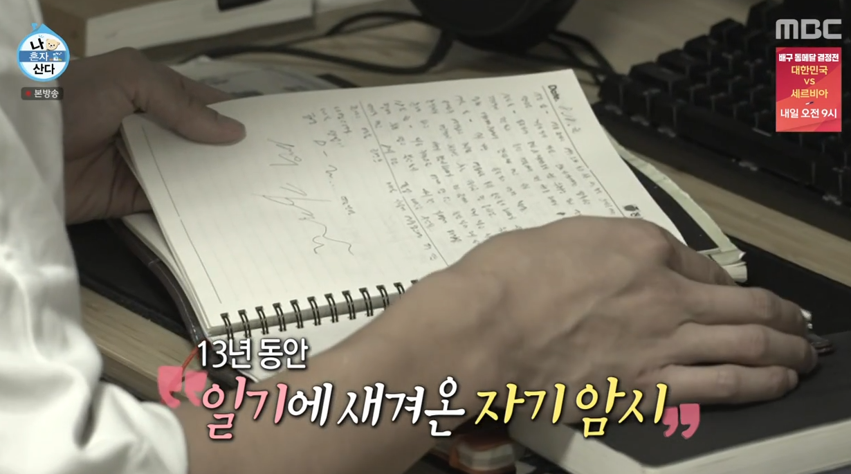 문틀 철봉을 활용해 훈훈한 홈 트레이닝까지 마친 김경남은 마지막으로 13년간 거의 매일 써온 일기를 정리하며 감회에 젖었습니다.