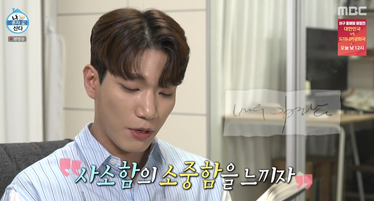 사소한 즐거움을 놓치고 있는 것 같다며 사소함의 소중함을 느끼자고 쓴 일기를 낭독하며 감정을 추스렸습니다.