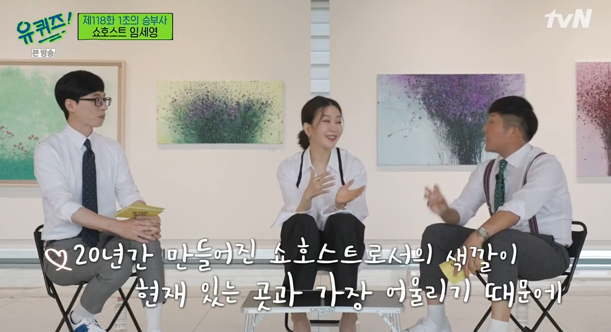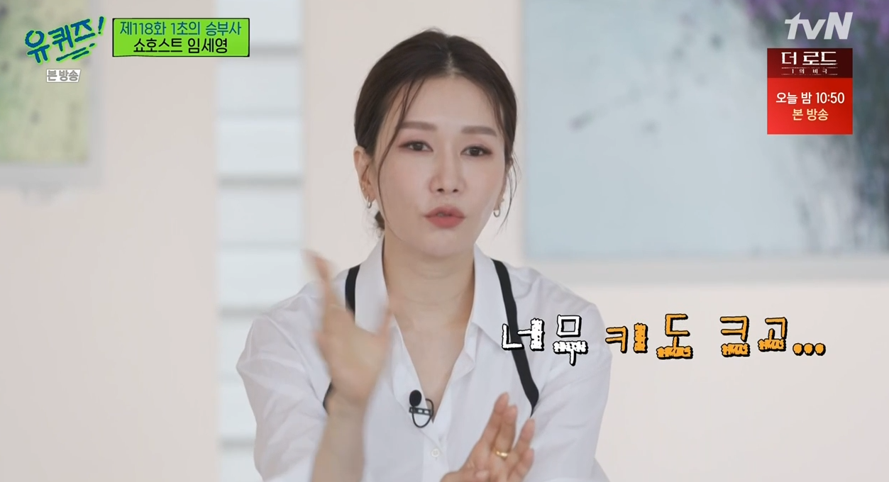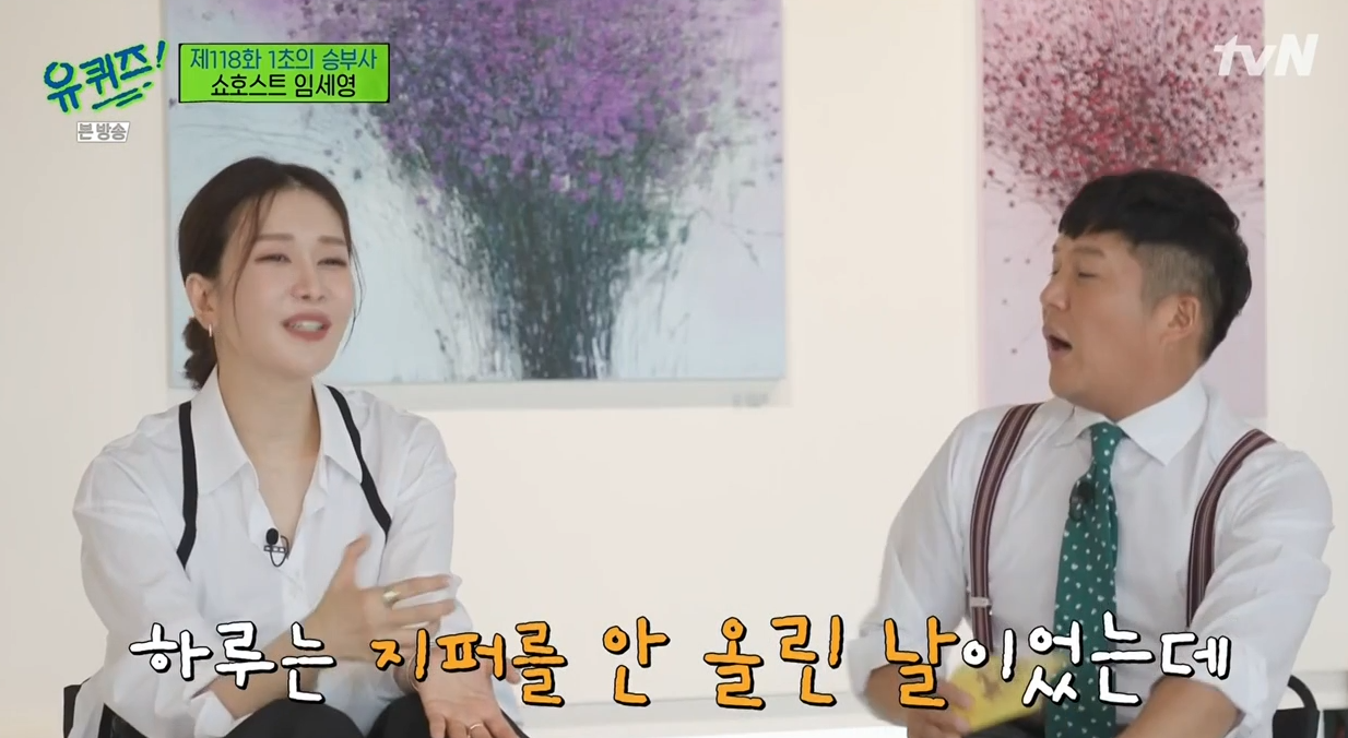 유재석은 "보통 패션 쪽을 많이 맡아서 하신다더라"라며 했고, 임세영은 "처음 입사하고 3~4년은 쭉 돌았던 거 같다. 음식을 광고하면 제가 너무 키도 크고 팔다리도 커서 '고등어가 팔뚝만 해요'라고 멘트해야 하는데 저한테는 고등어가 손바닥만 했다. 자신의 큰 체격에 신체적인 한계가 있다"라며 밝혔히며 그 당시에 어려움을 토로했습니다.