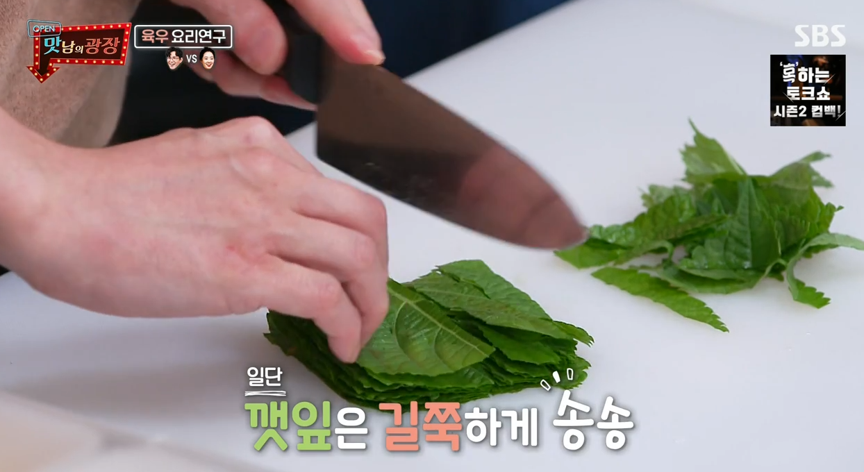 3. 깻잎을 길쭉하게 송송 잘라줍니다