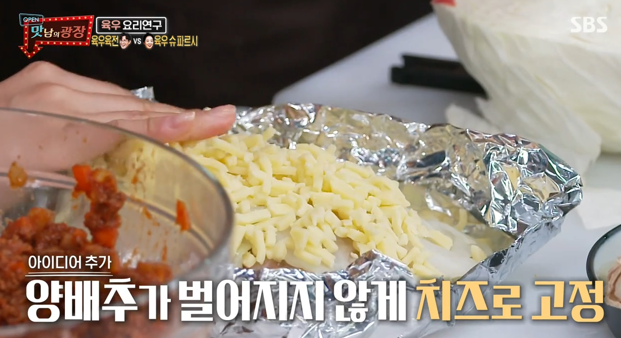 14. 양배추가 벌어지지 않게 모차렐라 치즈를 올려줍니다